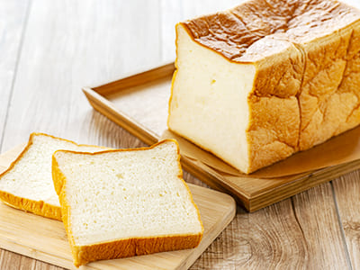 国産小麦、生乳バター、純生クリームを贅沢に使い、ふわふわで耳まで柔らかく甘みのある食パン。