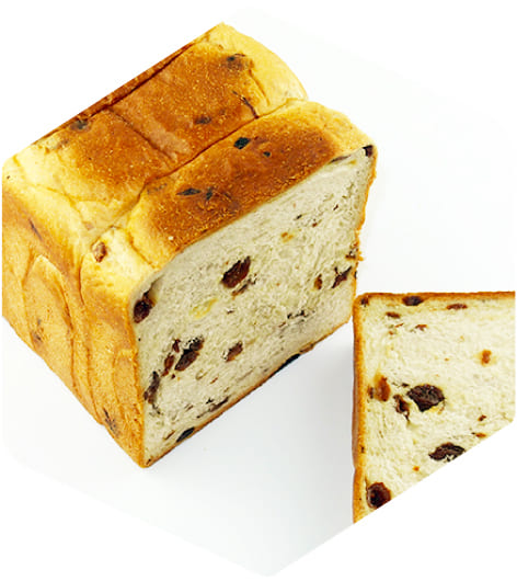 カリフォルニアレーズンをラム酒に漬け込んだものをたっぷりと使用。大人の食パンです。トーストしてバターを塗るのがオススメ。